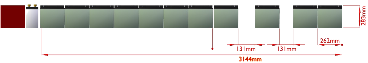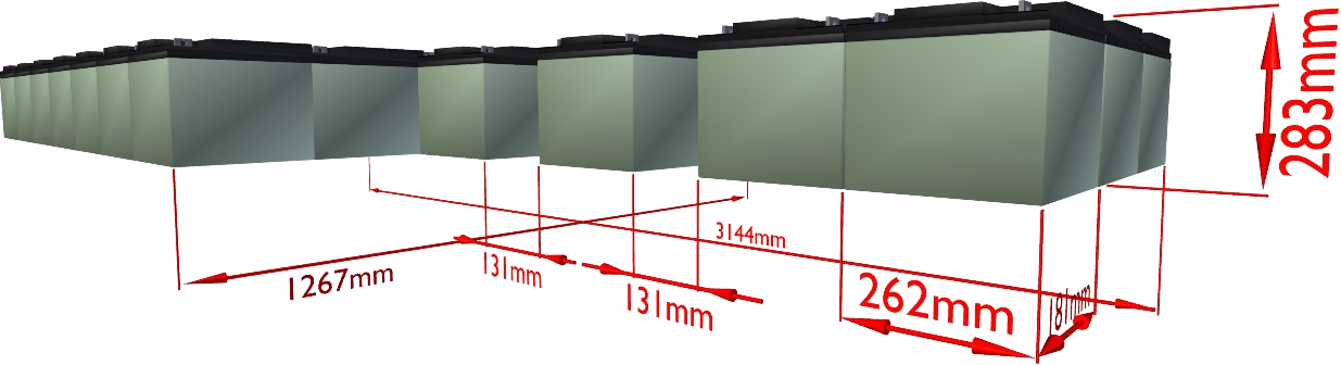 The battery weight is 30kg(66lb), so the pack weighs 3 tonnes (2.95 imp ton).
